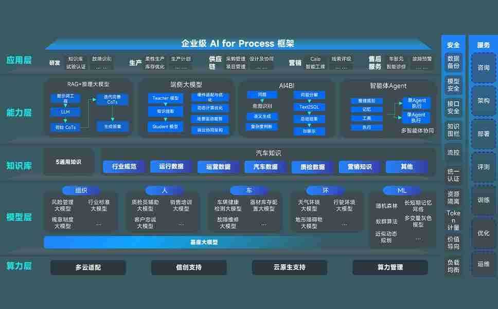 豪门国际问学智车解决方案是一套基于AI技术的汽车行业智能化系统,,,覆盖从底层算力到顶层AI应用的全栈方案。。方案由算力层、、、模型层和应用层组成:算力层,,,,方案支持多种一体机配置,,,具备云端灵活部署、、多云适配以及动态优化计算资源的能力;模型层,,,豪门国际问学平台版提供了企业级AI应用一站式构建与管理平台,,,,支持基于后训练强化技术的汽车企业专属模型的训练、、评测和运营;应用层,,豪门国际问学DeepSeek版提供包括超级员工、、智能招采、、智能营销、、、、智能客服、、、、AI for BI等一系列解决方案,,,,可助力汽车行业实现数字化转型,,,,让管理更智能、、、响应更敏捷。。